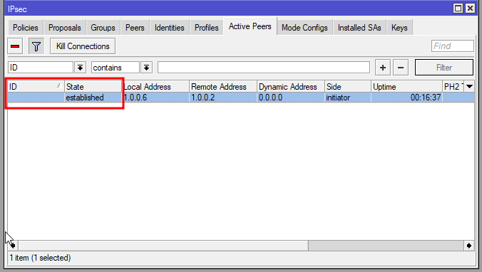 IPSec >> Active Peers. Kemudian Cek pada bagian state